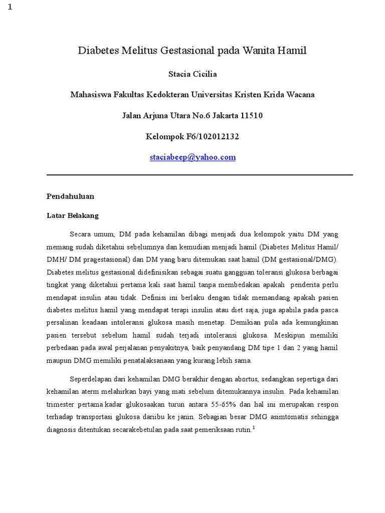 Diabetes melitus gestasional (dmg) gangguan toleransi karbohidrat yang mengakibatkan kadar gula darah meningkat dan pertama kali diketahui pada saat hamil 1²14% dari semua kehamilan (data di indonesia:1,9-3,6%) frekuensi dm pada kehamilan maupun dmg yang tidak terdiagnosis Æ 10 -25% 9 angka kesakitan dan kematian baik ibu. Ibu hamil perlu memperhatikan kondisi kesehatan mereka untuk mencegah penyakit diabetes gestasional yang bisa membawa dampak buruk pada janin. untuk bisa melakukan tindakan pencegahan, perlu diketahui lebih dulu apa saja penyebab dari diabetes gestasional ini. Laporan pendahuluan pada ibu hamil dengan dx diabetes melitus a. pengertian adalah penyakit kronik yang komplek yang dikarakteristikan dengan gangguan metabolisme karb ohidrat, protein, lemak dan perkembangan dari mikrovaskuler (kental kapiler),arterisklerosis, makrovaskuler komplikasi dan neuropatik (gangguan struktur dan funsi ginjal. Diabetesmellitus pada kehamilan dalam istilah kedokteran disebut diabetes mellitus gestasional. diabetes mellitus ini mungkin hanya berlangsung selama kehamilan tetapi dapat juga berlanjut meski sudah tidak hamil lagi. menurut penelitian sekitar 40-60 persen ibu yang mengalami diabetes mellitus pada kehamilan dapat berlanjut mengidap ibu hamil melitus diabetes diabetes.